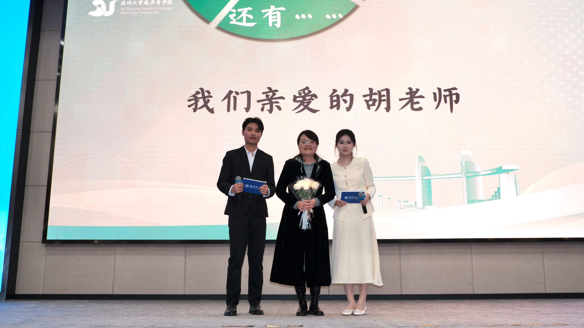在“鲜花致敬未来”环节,来自溯初班第17期的陈舒慧、施琳玮、曹光豪、蒋远同学分享了他们如何在今年大成人短视频新文科实践创新大赛中披荆斩棘,荣获国赛金奖的经验。为了帮助第16期溯初班成员更好地适应未来的一线教学,来自第13期的倪安舒、项国朝同学各自分享了自己一路走来的教育经历,让人久久难以忘怀。