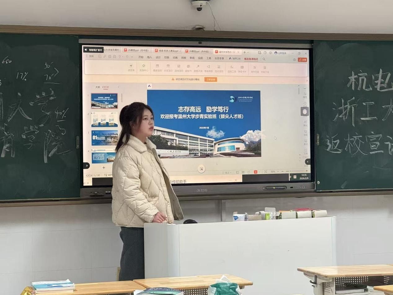 学子回访实践活动中,我回到了母校浙江省乐清市第二中学进行宣讲。首考刚刚结束,高考的脚步更近了,我向高三的学弟学妹们分享了自己首考后的一些心得体验,讲述了自己在面对首考结果的不理想和高考压力时如何克服内心的焦虑,继续学习。我结合自己的亲身经历,提出了一些建议,希望他们能放平心态,无论首考结果好坏都能重整旗鼓,继续坚持认真努力的学习态度,不要因为首考的一时失误而气馁。同时也分享了一些自己的学习经验,给他们提供更多的学习思路。